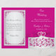 This romantic 8.5"x11" hot fuchsia pink and FAUX silver gray floral wedding program has a PRINTED ON ribbon and bow with a pair of PRINTED diamond jewel and FAUX fuchsia pink, red and purple glitter (simulated) joined hearts on it, with ornate scrolled borders on the back. There is also a verse that says "This day, I marry my best friend. The one I live for, laugh with, dream with, love" on it. It is designed to be folded down the center. ****PLEASE NOTE that the higher grade paper is a card stock and does not fold well. ALSO, be sure to make sure that the text is centered where you want it, as everything will print as you see it on your monitor. All the text is customizable. Email me at niteowlstudio@gmail.com if you need any assistance with the customization of this, or if you have any questions, or requests for matching items.