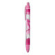 Very nice blue, or black ink pen. I will be buying more. The print was fine. I can easily see the print. The flowers look great.