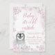 Pink Silver Penguin Baby Shower Invitation