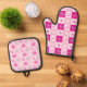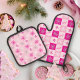 Pink & Silver Peppermints Snowflakes Add Your Name Oven Mitt & Pot Holder Set