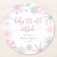 Pink silver snowflakes baby its cold outside Round Paper Coaster
