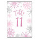 Pink Silver Snowflakes baby shower Eleven Table Number