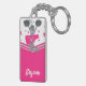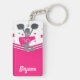 Pink Silver Stars Cheer-leading Personalized Name Keychain