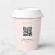 This minimal paper cup features a simple logo, QR code template with cute heart on a pink background. Add your logo, QR code and customize the text with your information. You can use this personalized cup at your business place, shops, company or any event.