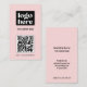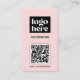 Modern Simple Blush Pink QR Code Logo Business Card featuring a blush pink hue and black minimalist design. Tailor it with your logo, QR code, company or business name, website, social media handles, and job title for a sleek appearance. It's a convenient way to promote your small business. Customize and order your business cards online effortlessly.