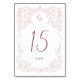 Pink Sketched Vintage Flourish Monogram Wedding Table Number