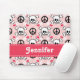 A cute and punky pink, black and white skull and crossbones mouse pad that can be personalized with your name. Artwork © Chrissy H. Studios, LLC. All Rights Reserved.