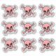 Custom cut out vinyl stickers of a pink skull and crossbones.