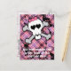 Black and pink design features a skull and crossbones with a pink bow high on top of the head, and hearts for the eye sockets. Perfect for the teen or pre-teen girl who is into grunge emo or monster zombie stuff. Funky hot pink plaid background with black paint splatters. Customize it with your own name or text for that added special touch. Design Copyright © cutecomfy.