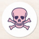 Pink Skull white round paper drink coasters