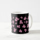 This girly skull design mug is covered with cute pink skulls with bows. There are also pink crossbones under each skull.
