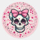 pink skull with bow classic round sticker