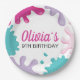 pink, purple and turquoise slime birthday party plates.