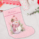 Pink Snowman Polka Dot Custom Christmas Stocking