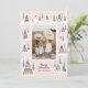 Pink Snowy A-Frames Winter Cabin Photo Holiday Card