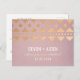 This wedding or event RSVP postcard features a faux bronze foil Aztec style pattern with easy to customize typography in a simple and clean layout all against a subtly textured shell pink background. Easily add meal choices for your guests and your return address to the back of this postcard. Personalize the suite by changing the background color to suit your needs and create a one-of-kind event invitation with of the moment Southwestern Boho flair.