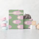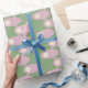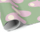 This wrapping paper has a mid-century modern design of pink ovals connected by pink lines with off-white circles all on a field of light green. Want different colors? Message me.