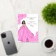 Pink quinceanera fashion illustration invitation card for quince parties. Pink Spanish quinceanera invite with gold foil. Add your information to this simple and elegant invitation. An ideal invitation that will match the pink dress of the quinceanera.