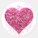 Pink sparking glitter heart love classic round sticker