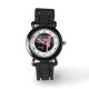 Any girl who loves ballet will love this watch! It features a pink silhouette ballerina at the center. Above the figure is a spray of silver stardust. The images are placed on a dramatic black background. Numbers placed on a white outer circle make the watch easy to read.