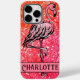 Fun party vibe, pink sparkling glitter Case-Mate iPhone 14 Pro Max Case with original artwork - text font is customizable and design is transferable-