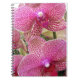 A personal sized, spiral bound notebook that features a cover photo image of pink speckled Moth Orchid flowers, also known as Phalaenopsis. A fun, floral design!