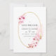 Pink watercolor floral spring wedding invite featuring sakura blossom with gold geometric frame customizable to your event specifics. Ideal for any given theme or garden wedding.