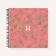 Pretty girly notebook in a pink and green spring floral design with your monogram and name.