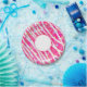 Pink donut with sprinkles pool float party plates are perfect for any pool or beach themed event.