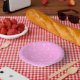 Paper bowls with pink background and sprinkles print.