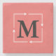 Pink Square Monogram Personalized Stone Coaster