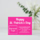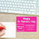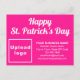 Pink St. Patrick holiday postcard that you can customize by uploading your business logo, typing your business name, address, phone number, e-mail and website or social media page. Customize it and give it to your customers or clients to greet them this St. Patrick's Day. A holiday postcard to also advertise your business or to promote your brand name. A customizable holiday postcard that you can include in your marketing materials to build brand name awareness. Please check the appearance after uploading logo and typing texts. If the appearance is pleasing to you, you can place your order now. If you need to resize and reposition the logo and texts to fit on this holiday postcard, please adjust in the design tool. You can also change the background color, font color and font style in the design tool. Happy St. Patrick's Day! Wishing you the best of luck, joy and more sales this holiday.