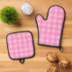Pink Star Petal Dot Pattern Oven Mitt & Pot Holder Set