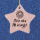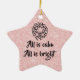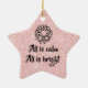 Lovely star shaped ornament with a pink glitter background and some lyrics from Silent Night - all is calm, all is bright. Complete with a decorative wreath. Celebrate!