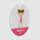 Cute gymnastics girl personalized photo Christmas ornament. Featuring a brunette haired gymnast illustration wearing a pink outfit. === BEFORE you place your order, contact the designer for FREE COLOR CHANGES (uniform color, hair color, skin color and background color). === GRAPHICS by JW Illustrations © JESSICAWEIBLE.COM === SAMPLE PHOTO OF GIRL IS NOT INCLUDED. REPLACE WITH YOUR OWN PHOTO BEFORE ORDERING.