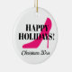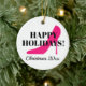 Pink stiletto Christmas tree ornament gift. Personalize with custom text or photo on the back.