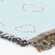 Pink stitched hearts on blue throw blanket