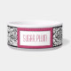 Pink Stitched Label Design Damask Dog Bowl