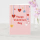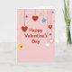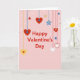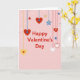This Valentine's Day card features a soft blush-pink background with “Happy Valentine’s Day” centered in bright red letters that look like a smooth print. Hanging above the words, red, blue, and gold strings hold a mix of hearts and star shapes like little decorations. The hearts have a stitched-look outline that makes them feel cozy and sweet, like a keepsake. Small white dots and tiny star marks are scattered around the background, like confetti in the air. The whole scene feels warm and calm, with the message clearly framed by the hanging shapes. It’s a simple design that still feels full of love and care, perfect for a partner or a close friend 💕❤️. Share it to help someone feel loved and remembered this Valentine’s Day.