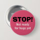 Simple message that says STOP, NOT READY FOR HUGS YET in black and white typography against a pink background. The white text is CUSTOMIZABLE, so you can create your own personal 'Keep Away' message! An ideal way to clear up the hug-or-elbow dilemma. Available in other colors.