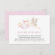 A book request insert card for baby shower. Featuring a watercolor stork carrying a baby wrapped in a pink blanket with poem: "ONE SMALL REQUEST, WE HOPE NOT TOO HARD
