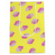 Pink strawberry flavor cupcakes on yellow background pattern design.