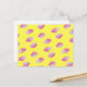 Pink strawberry flavor cupcakes on yellow background pattern design.