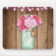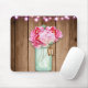 Pink String Lights & Mason Jar Flowers Rustic Wood Mouse Pad