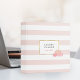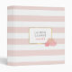 Chic pink and white binder features a delicate pink stripe background, faux gold border, and a group of peonies in pretty blush tones. Customize with a name, monogram or message in a combination of moderm charcoal grey block lettering and pretty pink calligraphy script.
