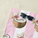 This pink and white striped bride beach towel has tropical pina colada drinks served up in a pineapple with an orchid flower and can be personalized with a name and bridal party title by clicking "personalize this template."
