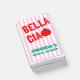 This charming matchbox design features a playful graphic Italian aesthetic with bold red "BELLA CIAO" lettering prominently displayed against a cheerful yellow and white striped background. A vibrant red tomato with green leaves sits above the text, adding a fresh, authentic Italian touch. The classic striped pattern creates a nostalgic, retro feel. The warm color palette of red, yellow, and green evokes the colors of Italy and creates an inviting, appetizing visual appeal.