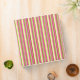 Stripes of hot pink, lime green, brown and cream give this binder a retro feeling.