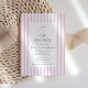 A chic pink and white striped baby shower invitation featuring a sweet pastel bow at the top. The modern preppy design combines playful charm with timeless elegance, making it perfect for celebrating a mom-to-be in style. Personalize with your own details for a unique and memorable baby shower.