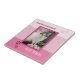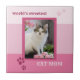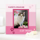 A super cute tile featuring a photo of your own favorite kitty framed by a pink striped design with cat paw prints and your own custom texts.